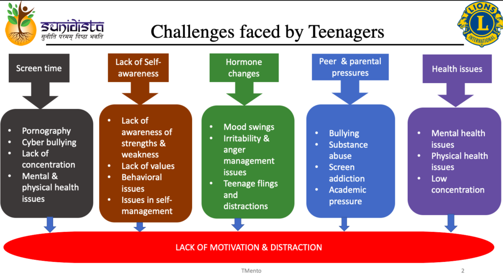 Teenage is an important phase of children’s life development. It is an exciting as well as a challenging time for them. They need to cope with several physical changes, emotional changes, and mental changes. For many of them, it can be tasking and confusing phase. The intention of this program is to run various mentorship programs, especially for economically challenged youth. The children who are interested in studies and need some kind of push and guidance. The below picture gives us a clear idea of teenager issues and what is the consequences of these challenges